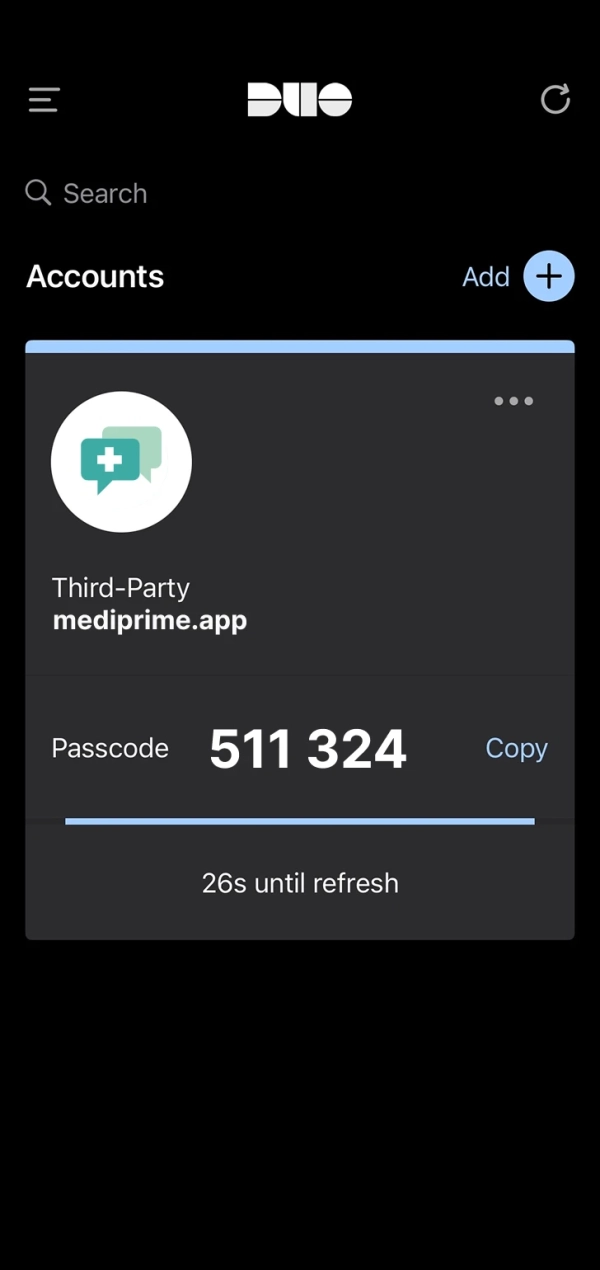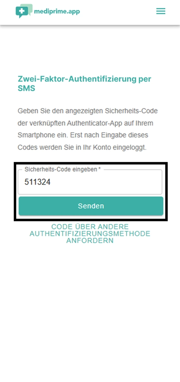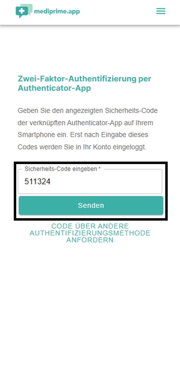 Öffnen Sie eine Authenticator-App und fügen Sie die mediprime.app über einen QR-Code hinzu. Diesen finden Sie in den Einstellungen unter "Zwei-Faktor-Authentifizierung". Nun können Sie jederzeit den aktuellen 6-Stelligen Code in der App abfragen.